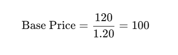 Use the calculator above and enter the total amount. It automatically computes the base price using the correct formula.